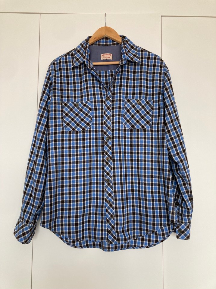 Düğmeli, uzun kollu, yakalı ve pamuklu kumaştan yapılmış kışlık mavi kareli erkek gömleği. Rahat kesimli ve günlük sokak stili için uygun.