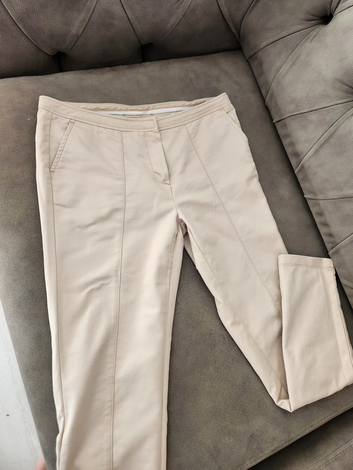 Bej renk, pamuk kumaştan yapılmış, normal boy slim fit kadın pantolon. Düzenli kesimi ve desensiz tasarımıyla günlük kullanıma uygun, rahat ve şık. sayılı giyildi tertemizdir hiçbir pamuklanması lekesi vs yoktur