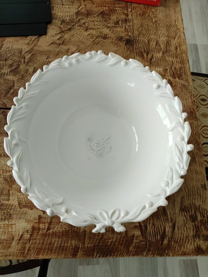 Dekoratif kenar detayına sahip beyaz seramik salata kasesi yiyecek sunumu veya saklama için uygundur. ️ Bir kaç yerinde atık var , boyanıp kapanır