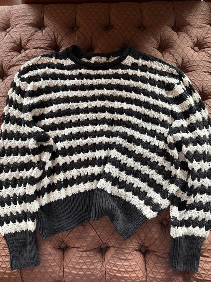 Mudo Siyah Beyaz Örgü Kazak Beden S Pamuk Karışımlı