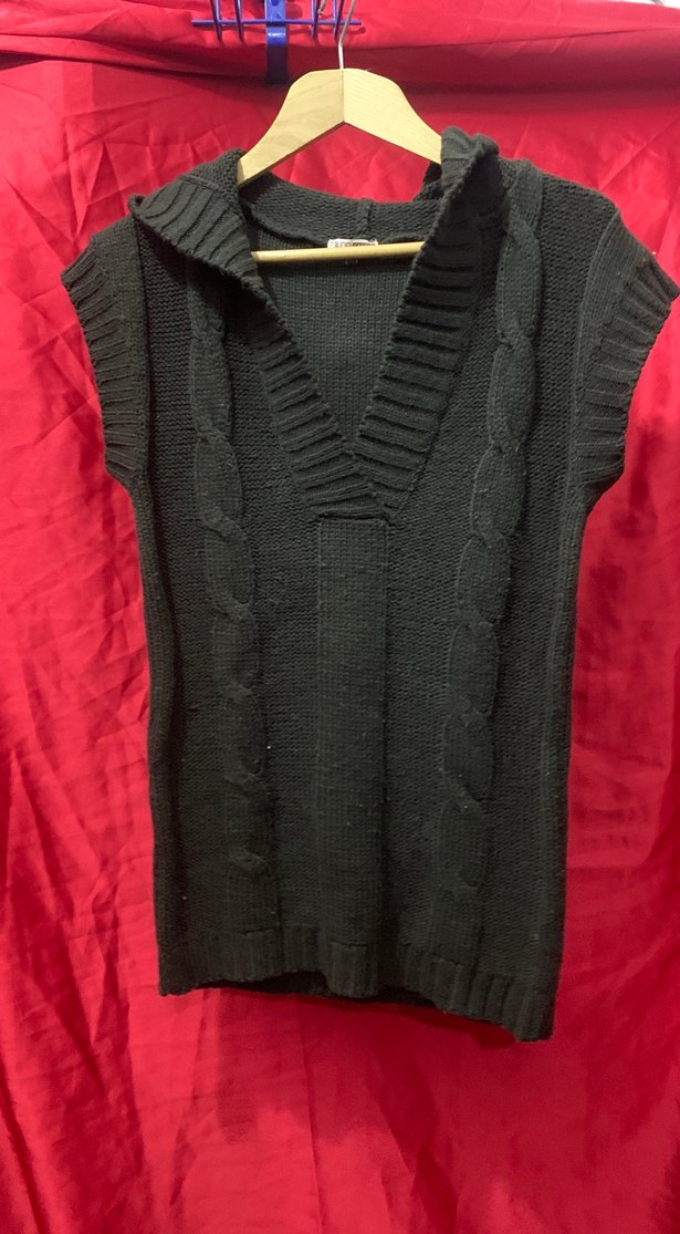 Siyah kolsuz, V yaka, örgü ve fitted kesim kazak, rahat gotik tarzıyla günlük kullanıma uygundur.