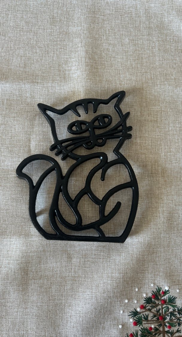 Siyah renkte döküm kedi figürlü altlık, yüzeyleri ısı ve çiziklere karşı korur, dekoratif bir dokunuş sağlar.Aksesuar olabilen estetik görünümlüdür