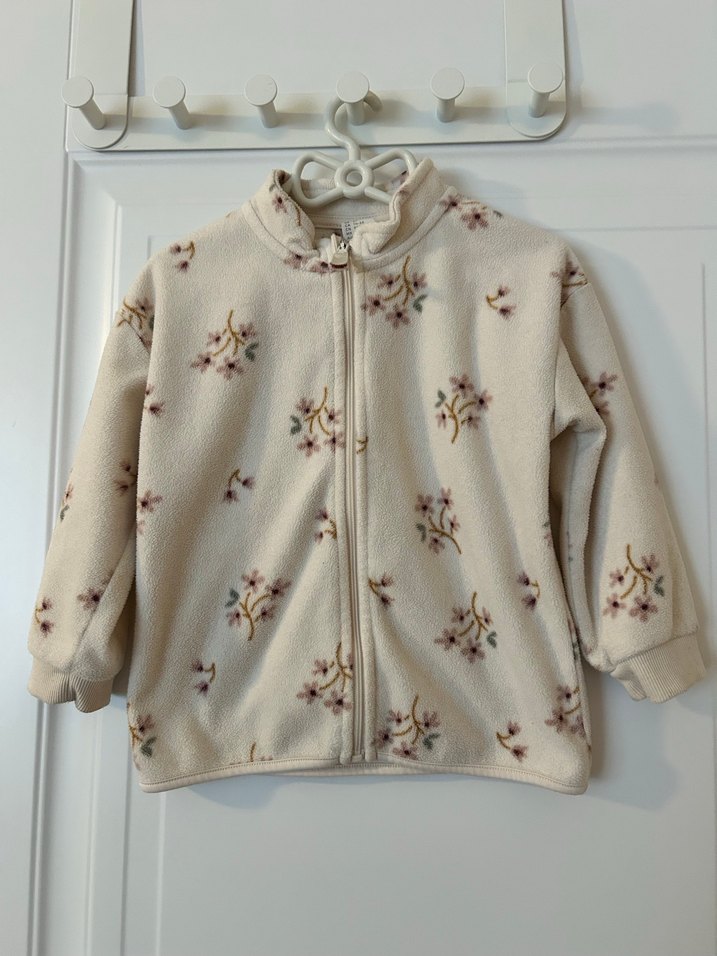 Bej renkli, desenli kız çocuk ceketi, fermuarlı ve bol kesimdir. Yuvarlak yaka ve yumuşak, sıcak kumaştan üretilmiştir.