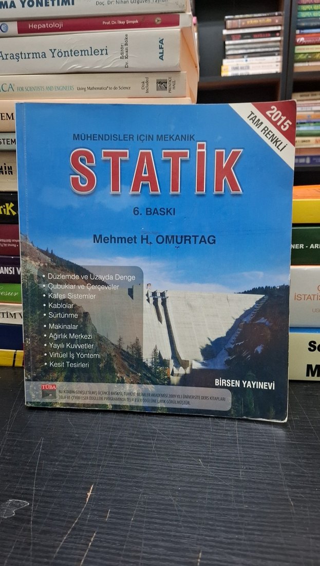 Mehmet H. Omurtag'ın 6. baskı 'Statik' kitabı, denge, çubuklar, kablolar, sürtünme ve santral konuları içerir.