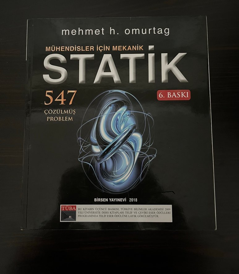 Mehmet H. Omurtag'ın 2018 Birsen Yayınevi tarafından yayımlanan 6. baskı mühendisler için statik kitabı, 547 çözümlü problem içerir.