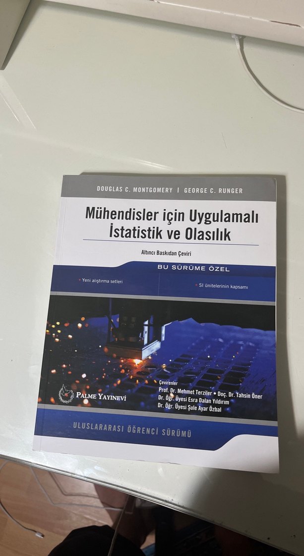 Mühendisler için uygulamalı istatistik ve olasılık kitabı, güncellenmiş alıştırmalar ve uluslararası öğrenci sürümü ile Douglas C. Montgomery ve George C. Runger imzası ile.
