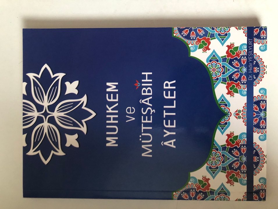 Muhkem ve müteşabih ayetleri içeren, süslü kapak detaylarına sahip dini kitap.