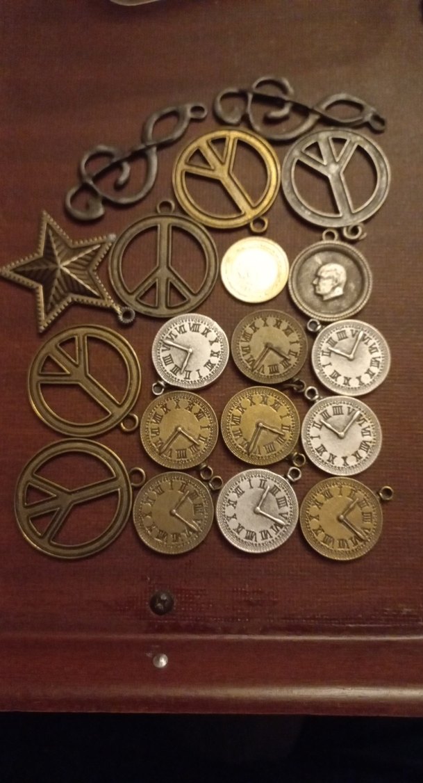 Çeşitli metal kolye ucları büyüklük karşılaştırması için resimde 1 TL'yi de çektim