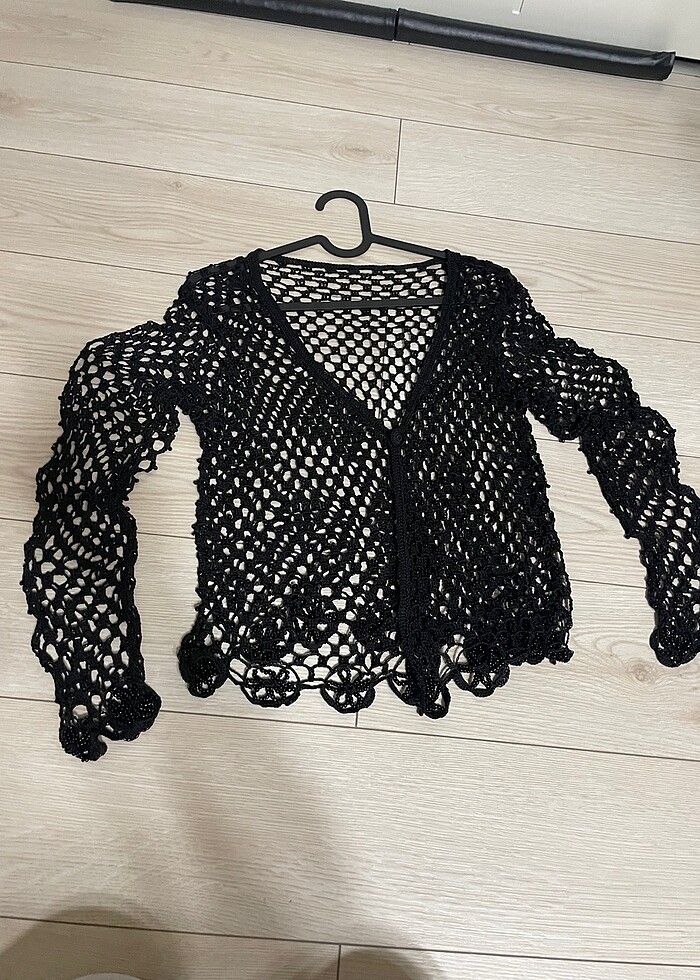Üstte duruşu çok güzel. Bir mağazadan alındı ama hiç kullanılmadı. İp kalitesi çok güzel. Her yerinde boncuk var. Çok şık bir abiye bluz. 38-40 beden uyumlu.