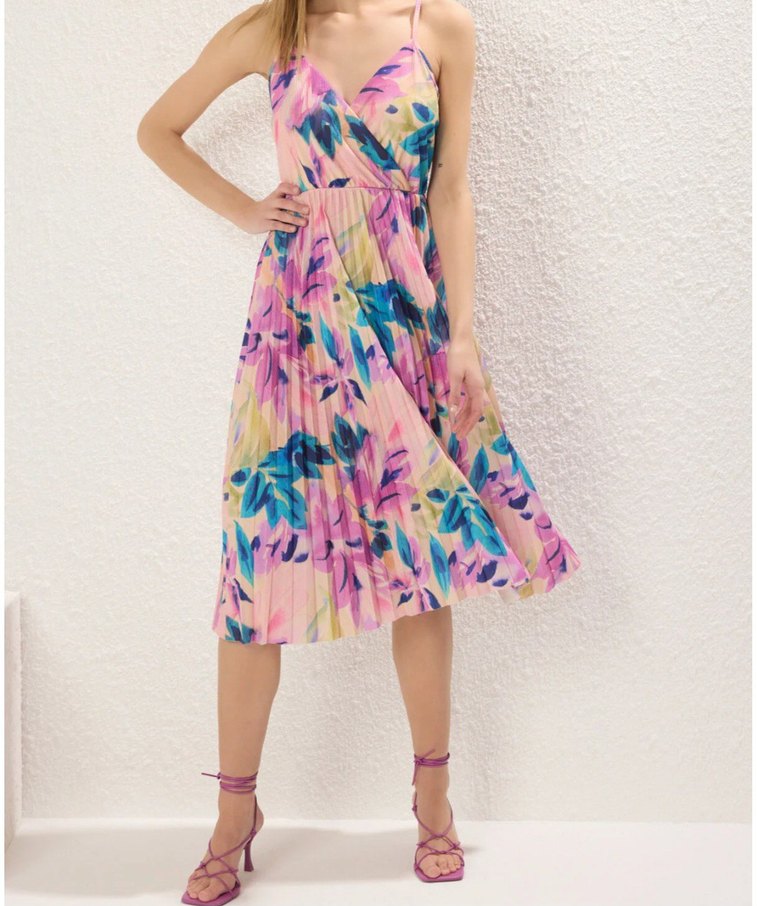 MUHTEŞEM ÇİÇEKLİ PİLİSELİ ELBİSE