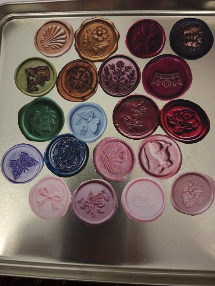 Mühür şeklinde yaklaşık 3cm çapında 20 adet stiker içerir. İstediğiniz tek bir mühür modeli varsa görsel olarak iletebilirsiniz.