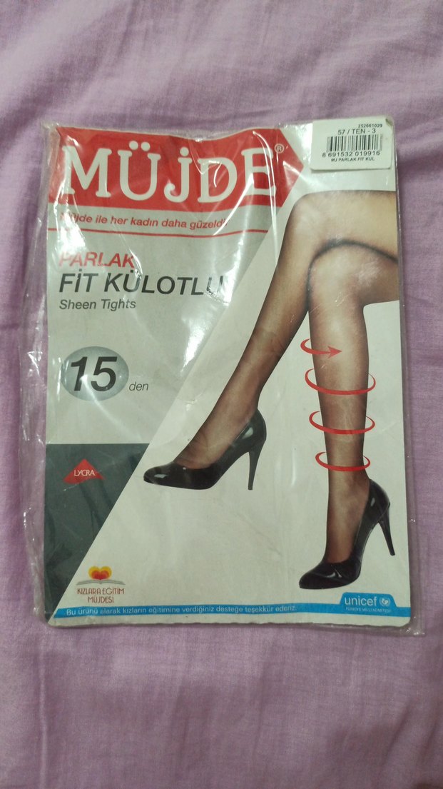 Müjde markasına ait siyah renkli, parlak ve ince 15 denye kalınlığında fit külotlu çorap. ✨