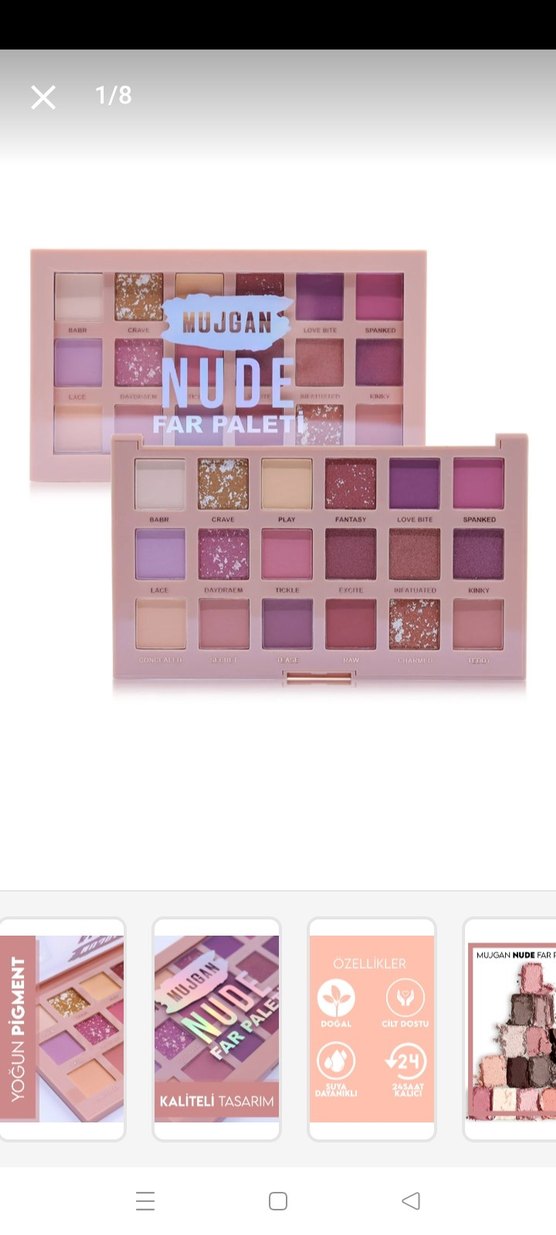 Mujgan Nude Far Paleti, mat ve ışıltılı dokularda açık bej ve mor tonlarında çeşitli göz farları sunar. Sıfır kutulu üründür.İsteginize göre aiparis veriyorum sistemden,daha sonrasında size kargoluyorum.Alım yapmadan önce bilgi verirseniz sevinirim