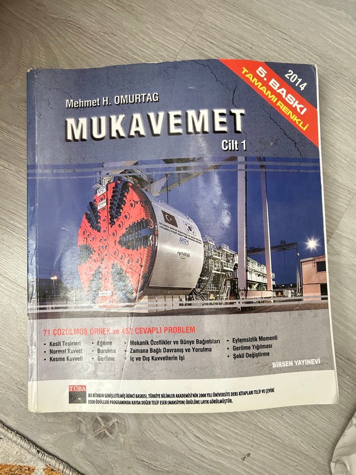 Mehmet H. Omurtag'ın Mukavemet Cilt 1 kitabı, 71 çözümlü örnek ve 45 cevaplı problem içerir. Kesit tesirleri, eğilme ve burulma gibi konuları kapsar. 2014, 5. baskı, tam renkli.
