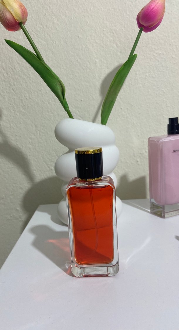 Kokusu yayilimli ve güçlü . Çilek Badem notalarından oluşuyor. 50 ml şişede görüldüğü kadar dolu