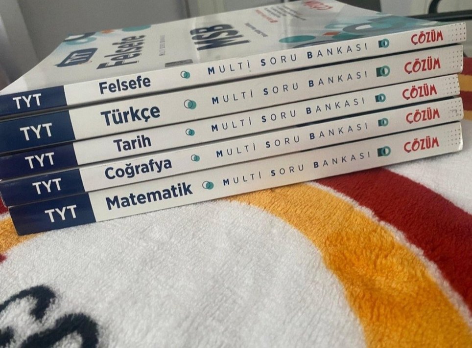 Felsefe, Türkçe, Tarih, Coğrafya ve Matematik derslerini içeren 5 kitap Multi Soru Bankası seti. Türkçe sayfa 83 e kadar çözülü toplam 344 sayfa Coğrafya sayfa 108 e kadar çözülü toplam 288 sayfa Tarihten 33 soru çözülmüş toplam 272 sayfa Matematik 7-8, 27-34 arası çözülmüş gerisi temiz toplam 408 sayfa Felsefe 7-8 çözülü gerisi temiz toplam 216 sayfa Toplu fiyat elimden çıksın diye hepsini göndericem