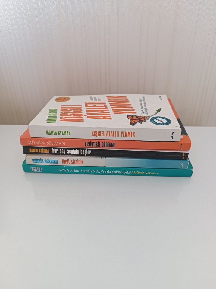 Mümin Sekman'ın kişisel gelişim ve motivasyon üzerine üniversite kitapları seti. Alışkanlıklar, öğrenme ve kendini geliştirme konuları içerir.