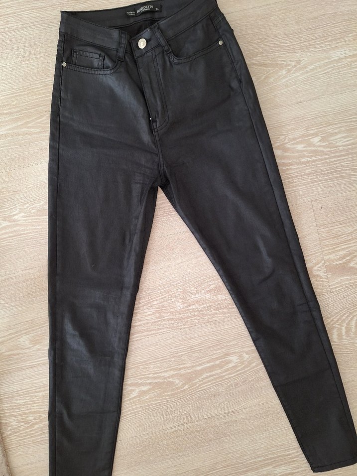 Siyah deri, normal boy, bel detaylı kadın pantolon. Günlük sokak stili için rahat ve şık bir tercih. MUADİL MUMLU KUMAŞ DERİ PANTOLON ADDAXTAN ALMIŞTIM KUMAŞI ÇOK İYİ