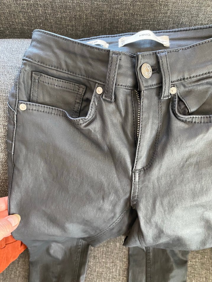 deri görünümlü mumlu , dar kesim kadın pantolon günlük kullanıma uygundur.xxs mango marka yeni