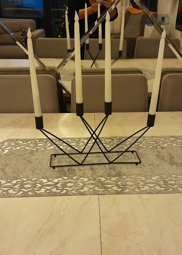 Yeni cok az kullanildi. Uzunlugu 47 cm ( muma kadar olan uuznluk) Genisligi 36 cm Oldukca şık. Mumlari pillidir. ( hepsi calismaktadir. )
