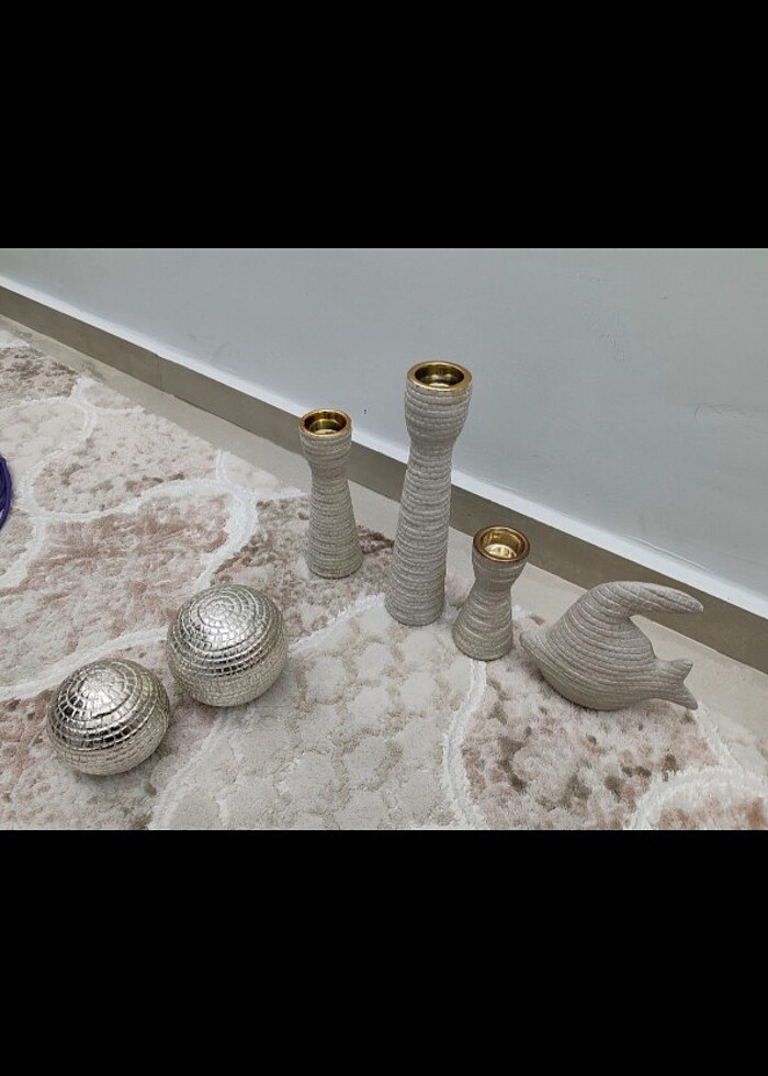 Uzun olan şamdan kırık yapıştırılmış. Belirsiz dir. Bazıları antik beyaza boyanmıştır. Sorun yoktur. Tek parça fiyatıdır.