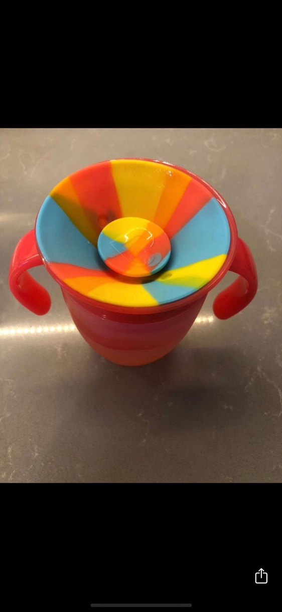 Çift kulplu ve yumuşak esnek ağızlıklı çok renkli bebek bardağı. Canlı tasarımıyla dikkat çeker.