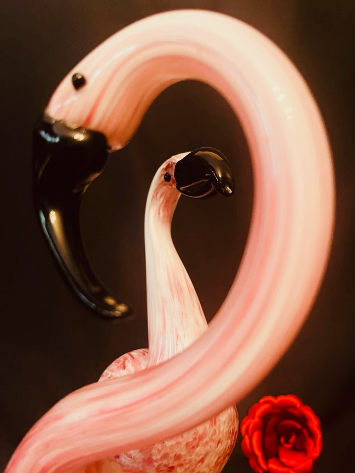 MURANO CAM PEMBE FLAMİGO HEYKELCİK