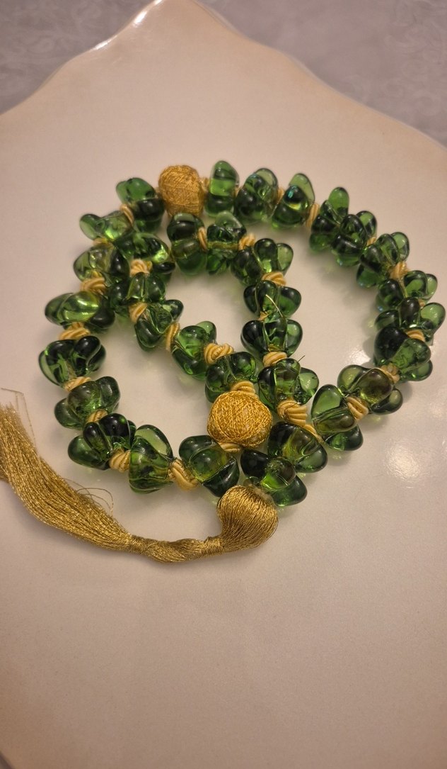 murano italyan cam tesbih. zümrüt yeşili, 33 lü boncuk, sıfır ürün.