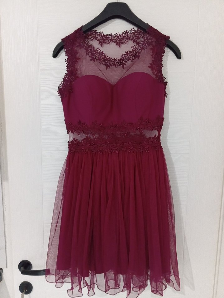 mürdüm Dantel İşlemeli Mini Abiye Elbise