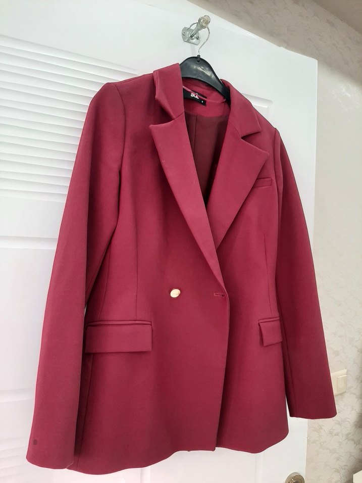 Bordo kadın blazeri, düğmeli ve kesik yaka detaylıdır. Uzun kollu, regular fit ve ofis stiline uygundur. Sentetik kumaştan, desensiz ve modern klasik tasarımlıdır.