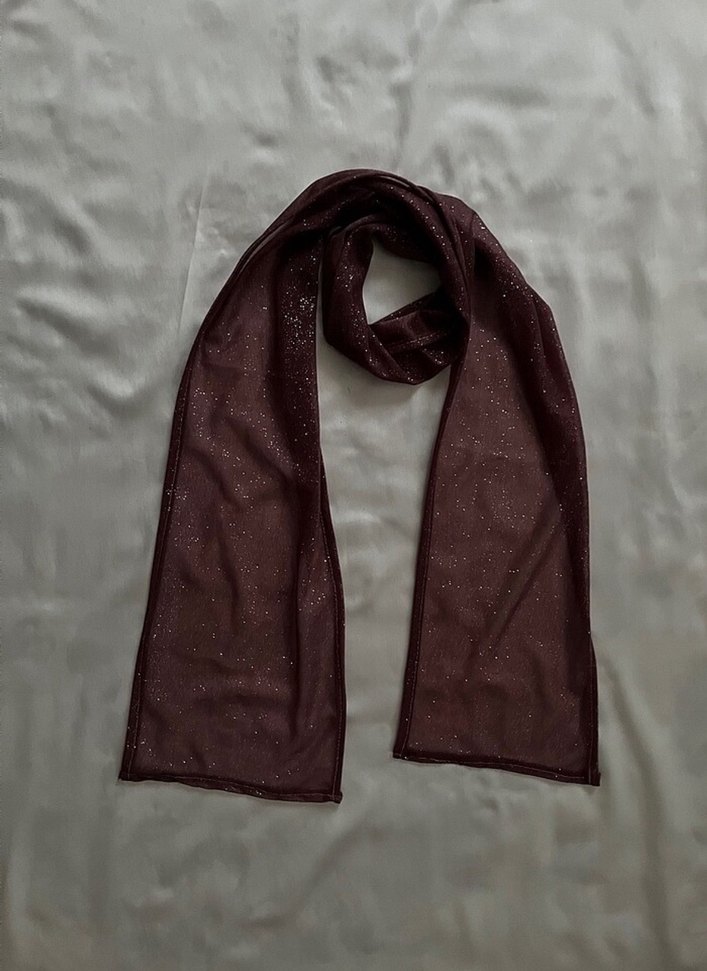 Mürdüm renkli, parlak ve ipek görünümlü kumaştan yapılmış, drapeli şal, bandana dularsade ve bohem stil için uygundur. Simlidir hiç kullanılmadı