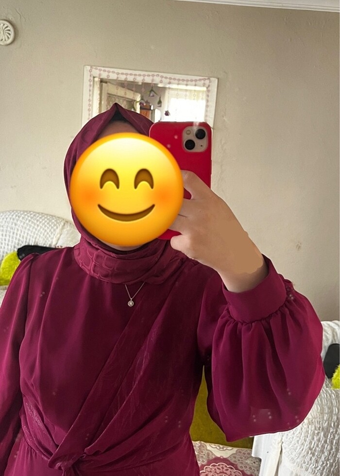 Sadece bir kez kısa süreliğine giyildi, sıfır ayarındadır. Asil mürdüm tonundadır – bordo gibi görünse de daha tok ve morumsu bir havası vardır. Dar kesim, şifon kumaşlı, astarlı ve arkadan fermuarlıdır. Beli kuşaklı ve üst kısmı rahat kesim olduğu için, normalde 38-40-42 beden kullananlar için de uygundur. Vücuda zarif şekilde oturur, şık bir duruş sağlar. Özel günler, nişan, mezuniyet ve davetler için mükemmel bir seçenektir. Hiçbir leke, deformasyon veya yıpranma yoktur. İsteyenlere detaylı fotoğraf ve ölçü bilgisi verilir. Ürün özenle hazırlanıp hızlı şekilde kargolanır
