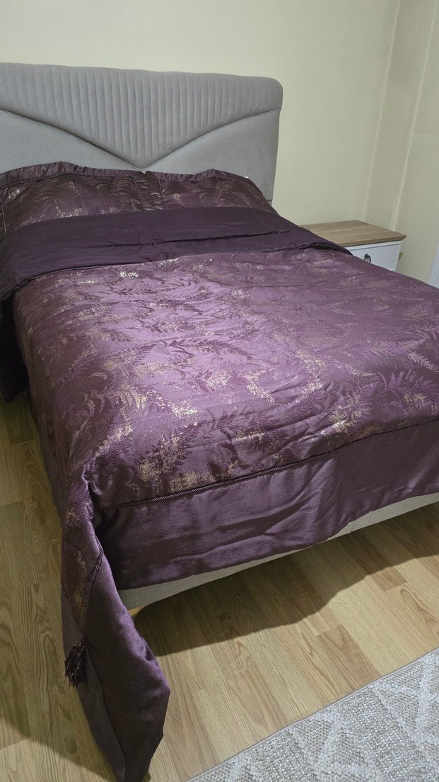 Mürdüm saten Yatak Örtüsü