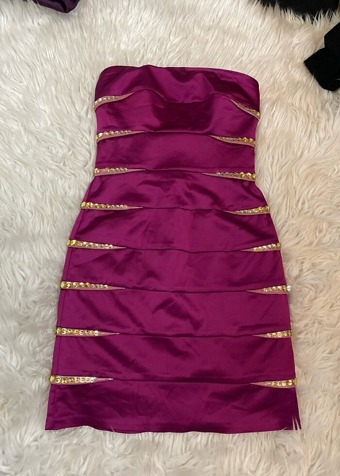 Mürdüm sten şık straplez elbise