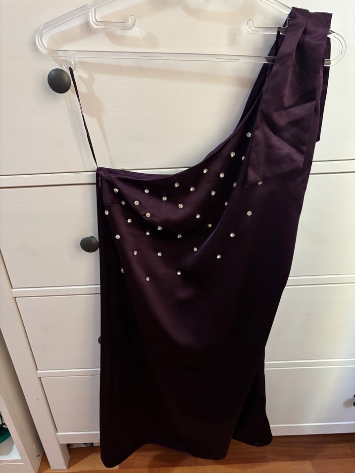 Mürdüm Tek Omuz Gece Elbisesi
