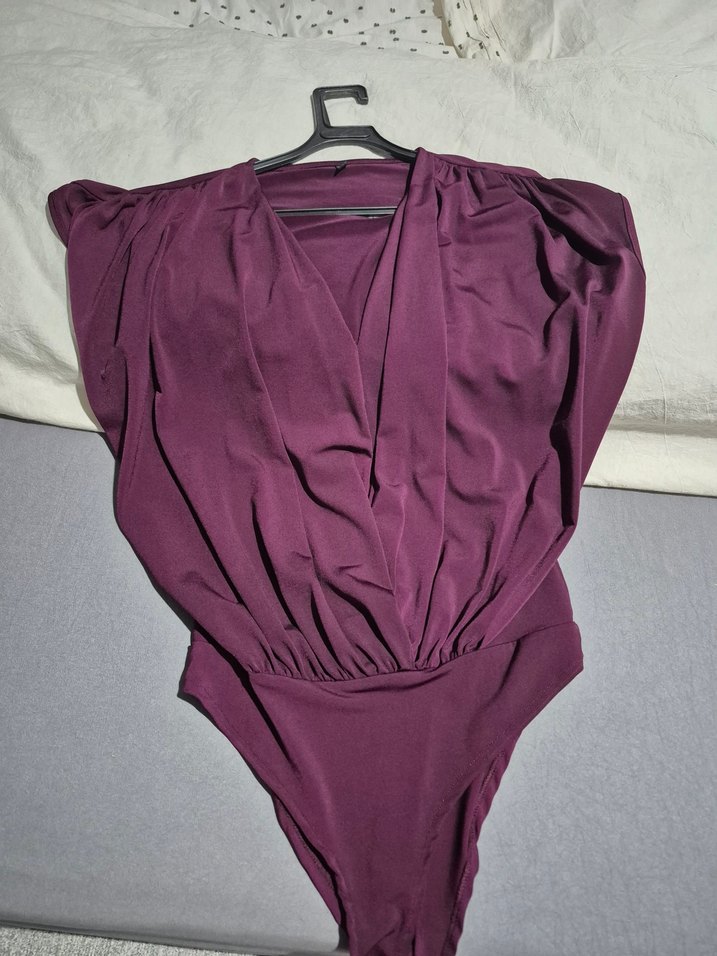 Mürdüm renkte, v yaka ve drapeli tasarıma sahip, sentetik kumaştan üretilmiş, kolsuz ve vücuda oturan kadın bluz. Günlük kullanım için uygundur.