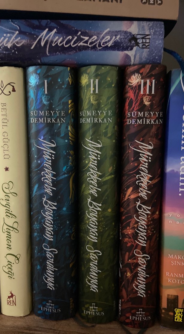 Sumeyye Demirkan'ın 'Mürekkebe Boyanan Sardunya' adlı üç ciltlik roman serisi. Kitaplar yepyenidir. Sadece 1. Ciltte bazı sayfalarda kurşun kalemle bazı cümlelerin altı çizilmiştir.