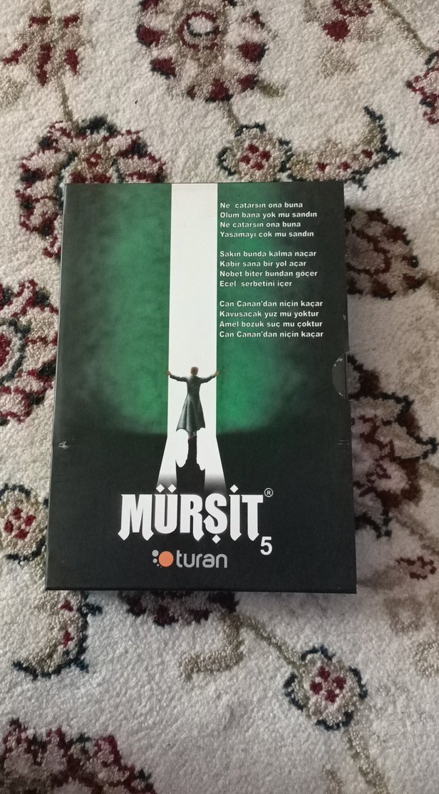 Oturan imzalı, kapağında şiirsel metin bulunan Mürşit 5 Osmanlıca kitap.