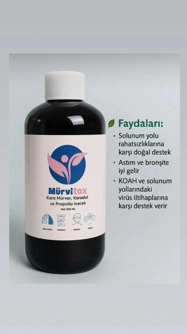 Mürvitox, kara mürver, karadut ve propolis içeren, solunum yolu rahatsızlıklarına, astım ve bronşite karşı doğal destek sağlar.