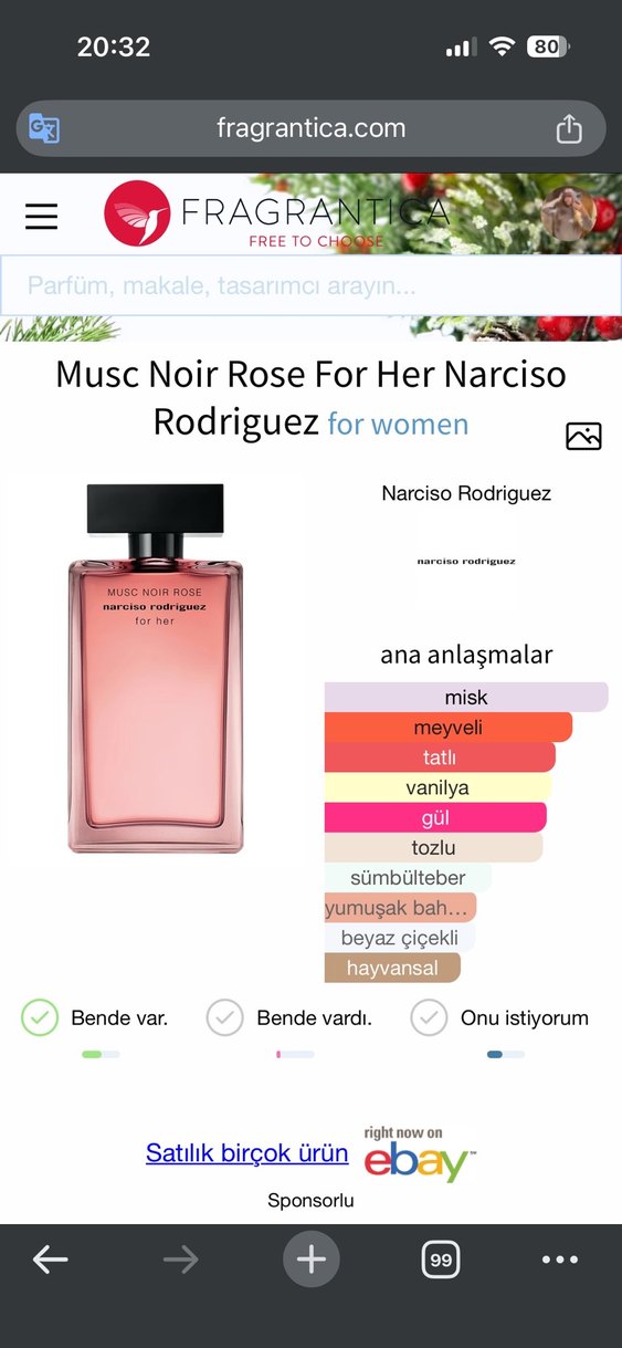 Narciso Rodriguez Musc Noir Rose parfüm, az kullanıldı