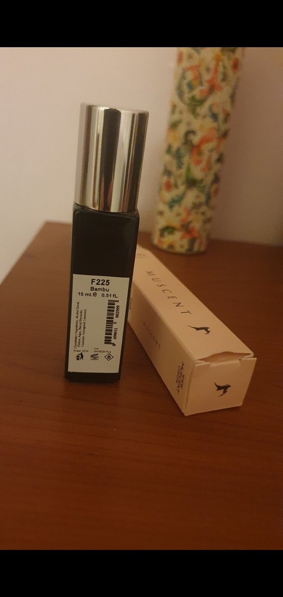 Musçent Gucci bambu muscent muadili, 15 ml şişede, siyah şık tasarım ve gümüş kapaklıdır. Ferah bambu notaları içerir. Sadece kokusuna bakıldı doludur.