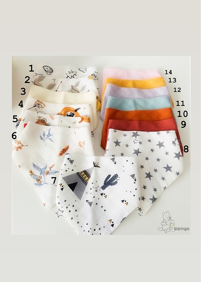 Adet fiyatıdır 3 adet 99₺ organik pamuk müslin önlük Bebek sağlığına zarar verecek hiçbir madde kullanılmadan boyanmıştır. Ürünlerimiz bebitomuzun onayından geçmiştir
