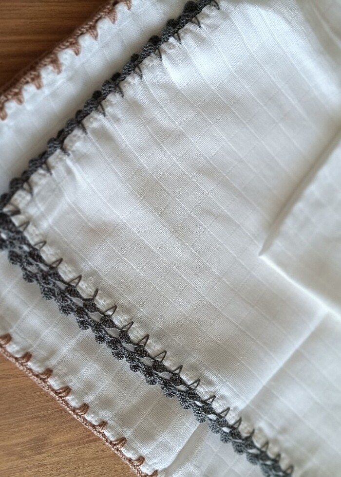 Kenarları tığ işi müslin tek katlı battaniye 90/90 ebatinda