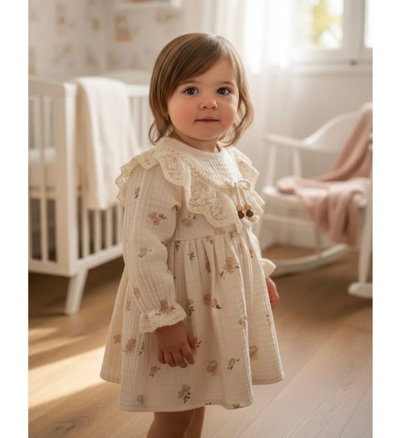 Müslin çiçek detaylı kız bebek elbisesi