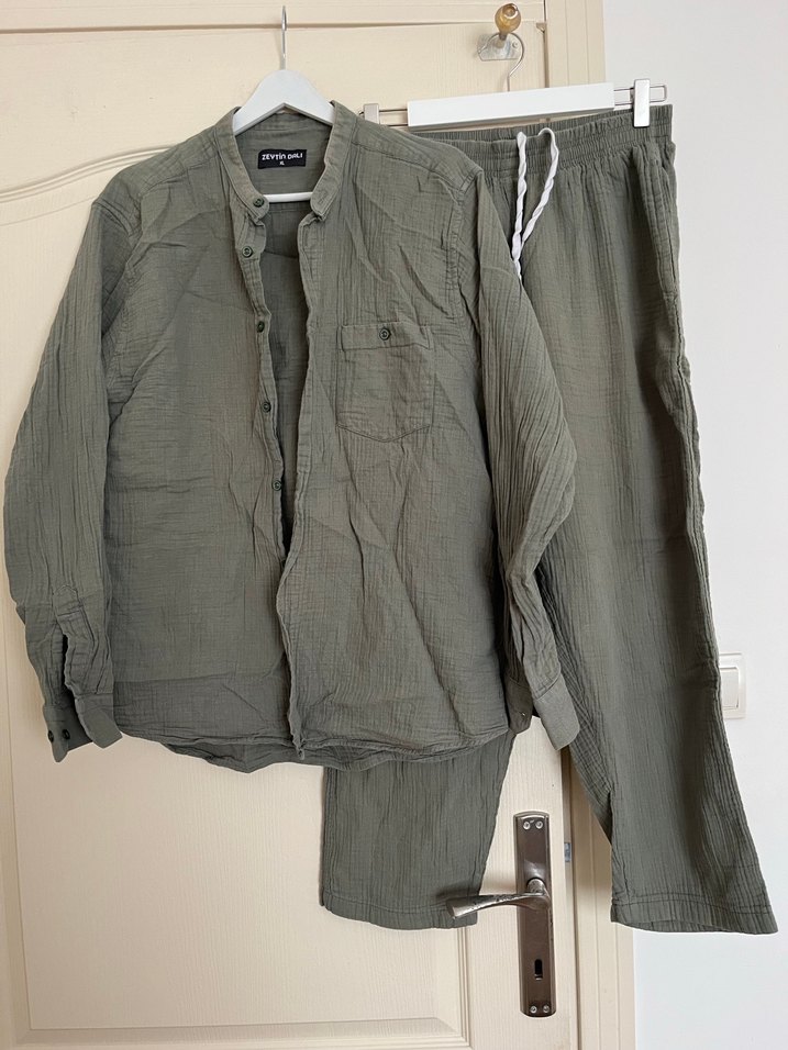 Müslin erkek takım haki renk umreye uygun