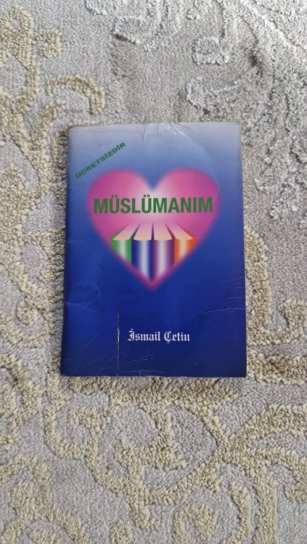 İsmail Çetin'in "Müslümanım" kitabı, İslam inancı ve değerlerini anlatıyor. Mavi zemin üzerinde renkli çizgili kalp tasarımı bulunuyor.