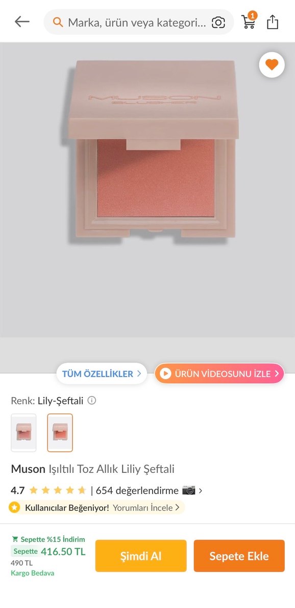 Muson Liliy şeftali rengi allık yeni alındı kullanılmadı