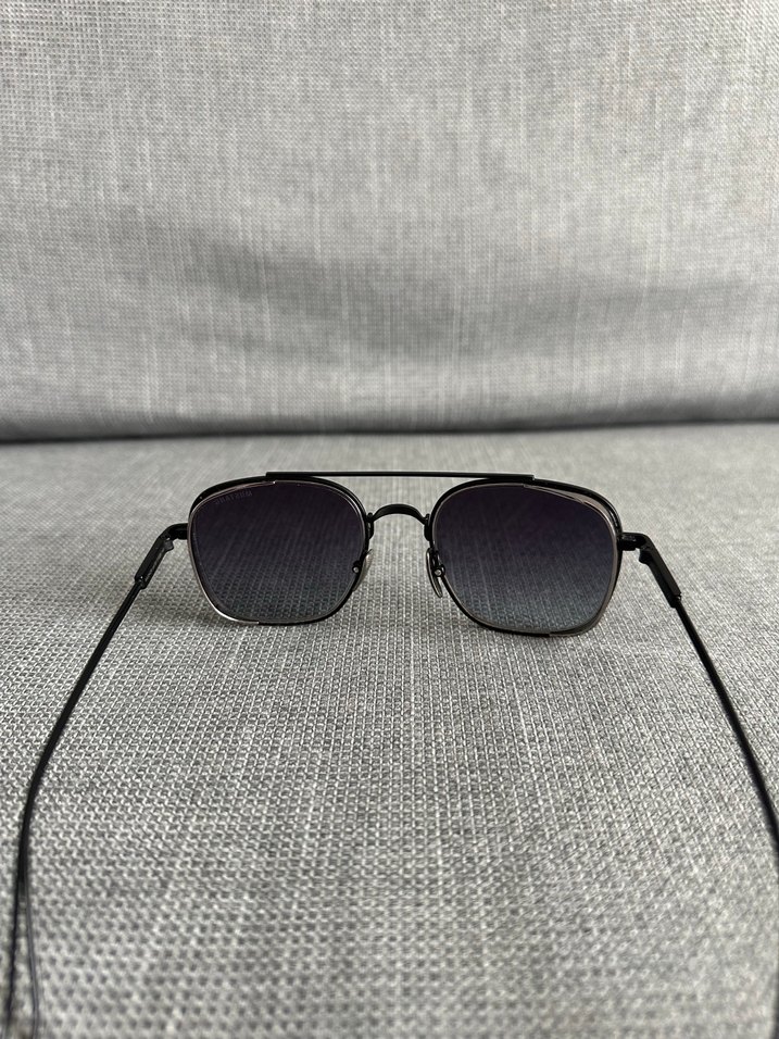 Şeffaf gri çerçeveli, degrade camlı minimalist erkek güneş gözlüğü, trend günlük tarz için uygun. Az kullanıldı