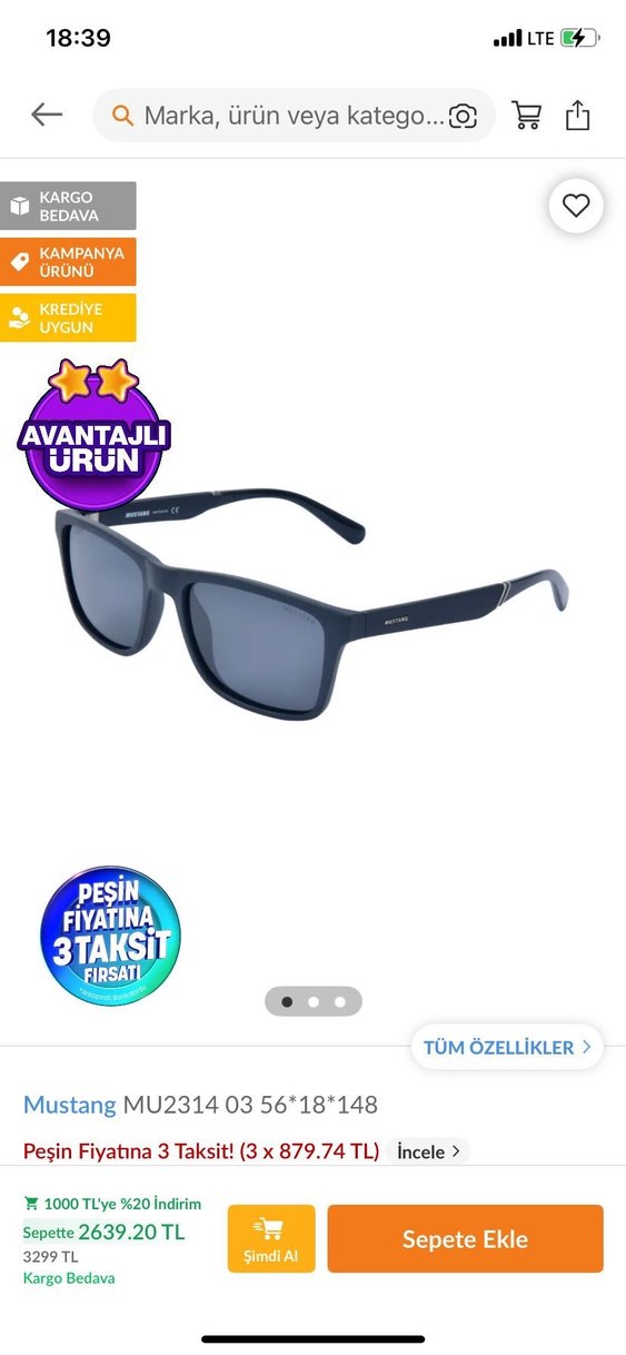 Mustang lacivert erkek güneş gözlüğü sadece 1 kez takıldı yüz tipine uymadı fiyatta anlaşırız
