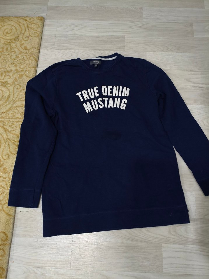 Lacivert renkli, uzun kollu ve bisiklet yaka erkek denim sweatshirt. "TRUE DENIM MUSTANG" baskılı, günlük kullanıma uygun, trend ve rahat stil sunar.